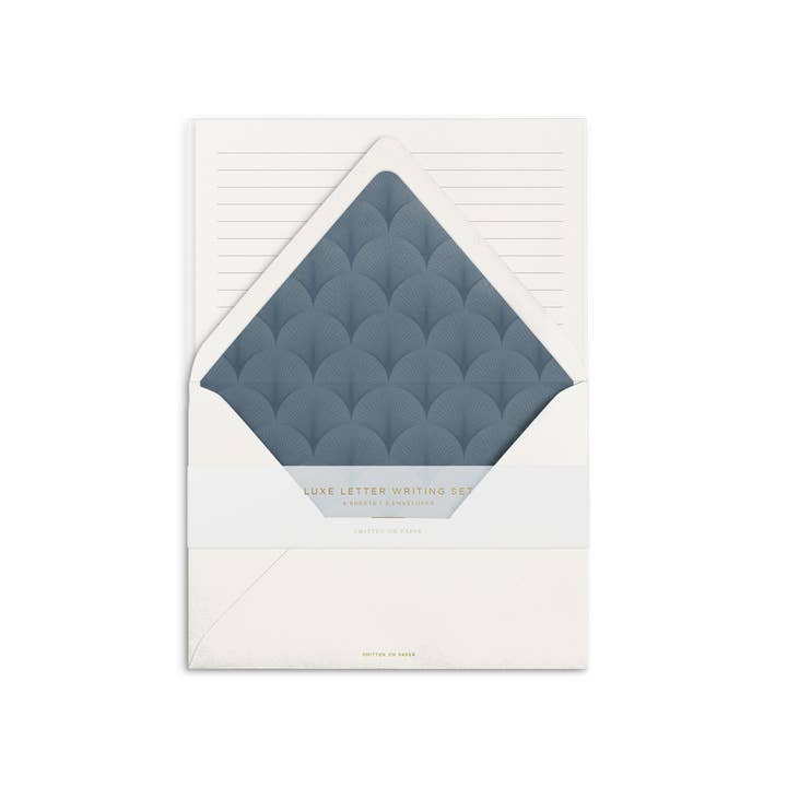 A classic stationery set with two lined envelopes and four sheets of lined paper. Send your letter in style. Includes a perforated keepsake foil backer.
